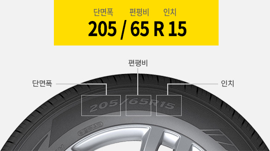 차량 타이어 옆면에 표기된 큰 숫자가 타이어 사이즈 입니다.