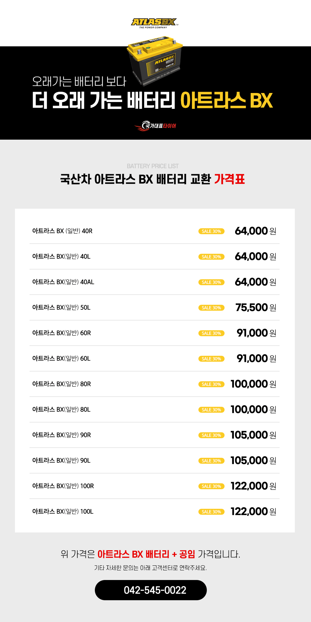 배터리/오일가격 안내